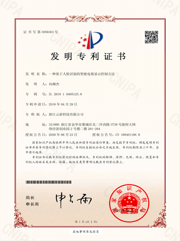 發明:一種基于人臉識別的智能電視顯示控制方法
