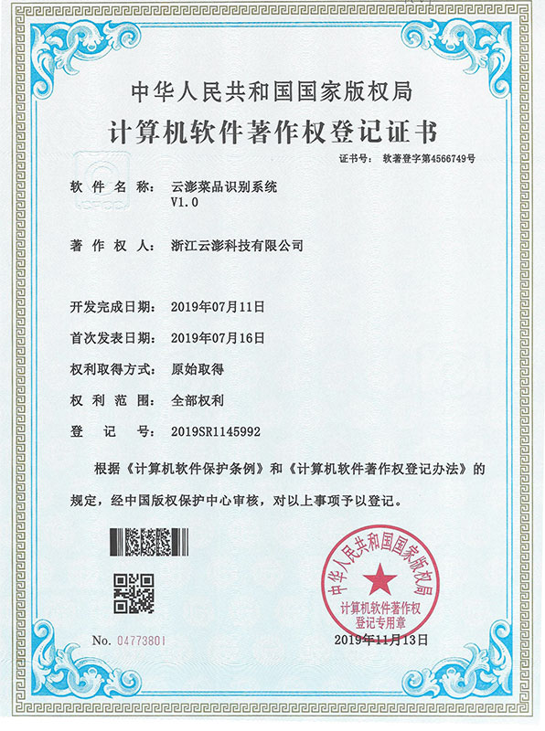 基于人工智能的餐具食品自動識別結賬軟件-公司名稱變更